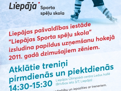 Aicinām uz hokeja nodarbībām 2011. gadā dzimušus zēnus....